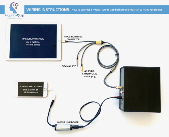 The Hypno-Com kit includes full wiring, mains adapter and 2 sets of quality headphones/microphones.